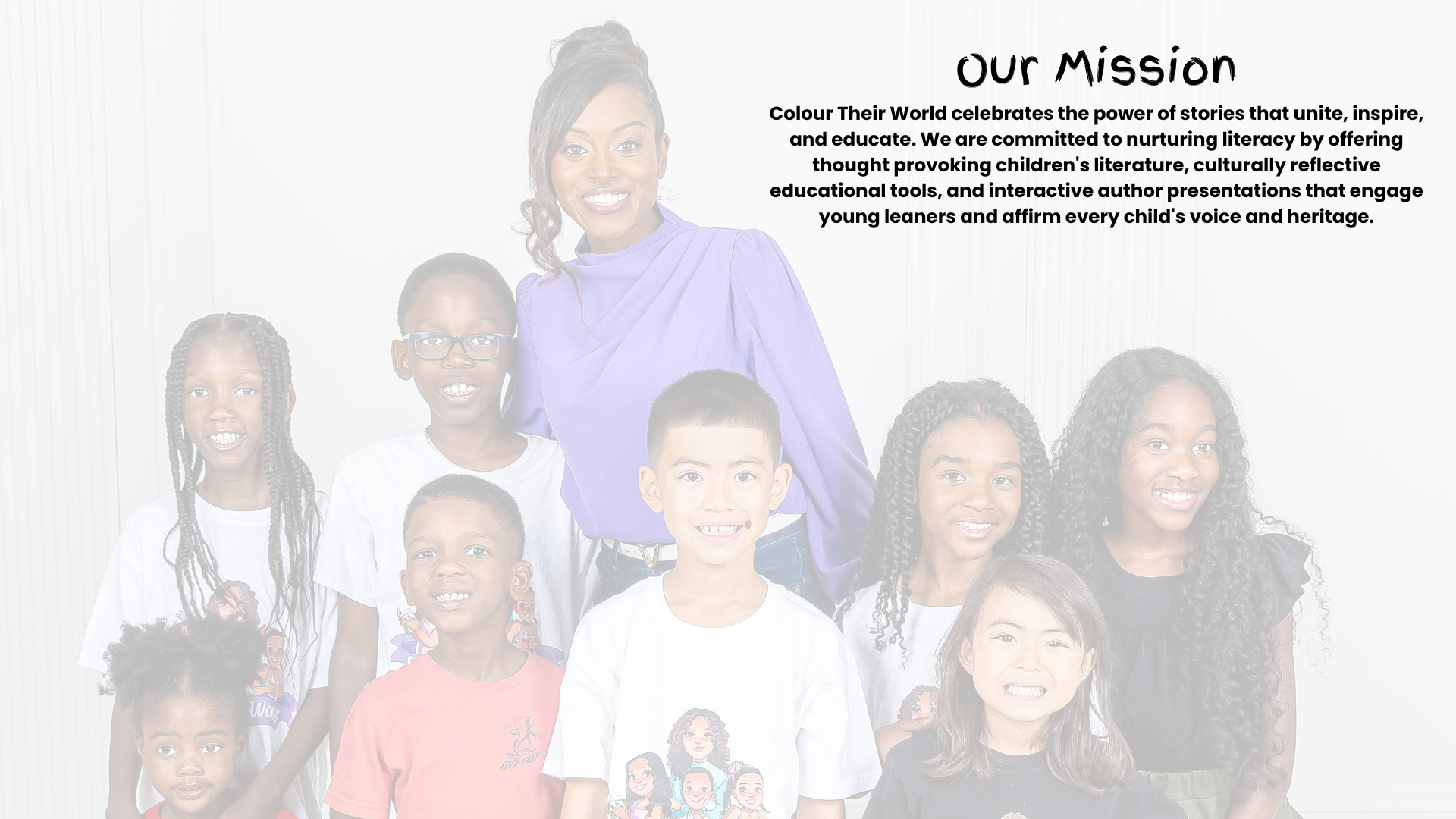 Colour Their world celebrates the power of stories that unite, inspire, and educate. We are committed to nurturing literacy by offering thought provoking children's literature, culturally reflective educational tools, and interactive author presentations that engage young leaners and affirm every child's voice and heritage.